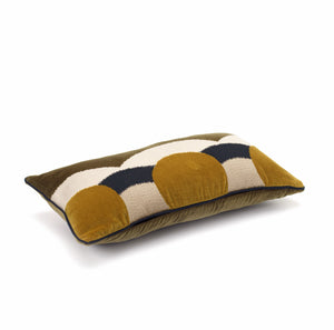 Célestine, geschaffen vom Studio de l’Accessoire, ist aus besticktem Ikat-Velours gefertigt, mit fesselnden geometrischen Mustern, die einen sich bewegenden Horizont hervorrufen.