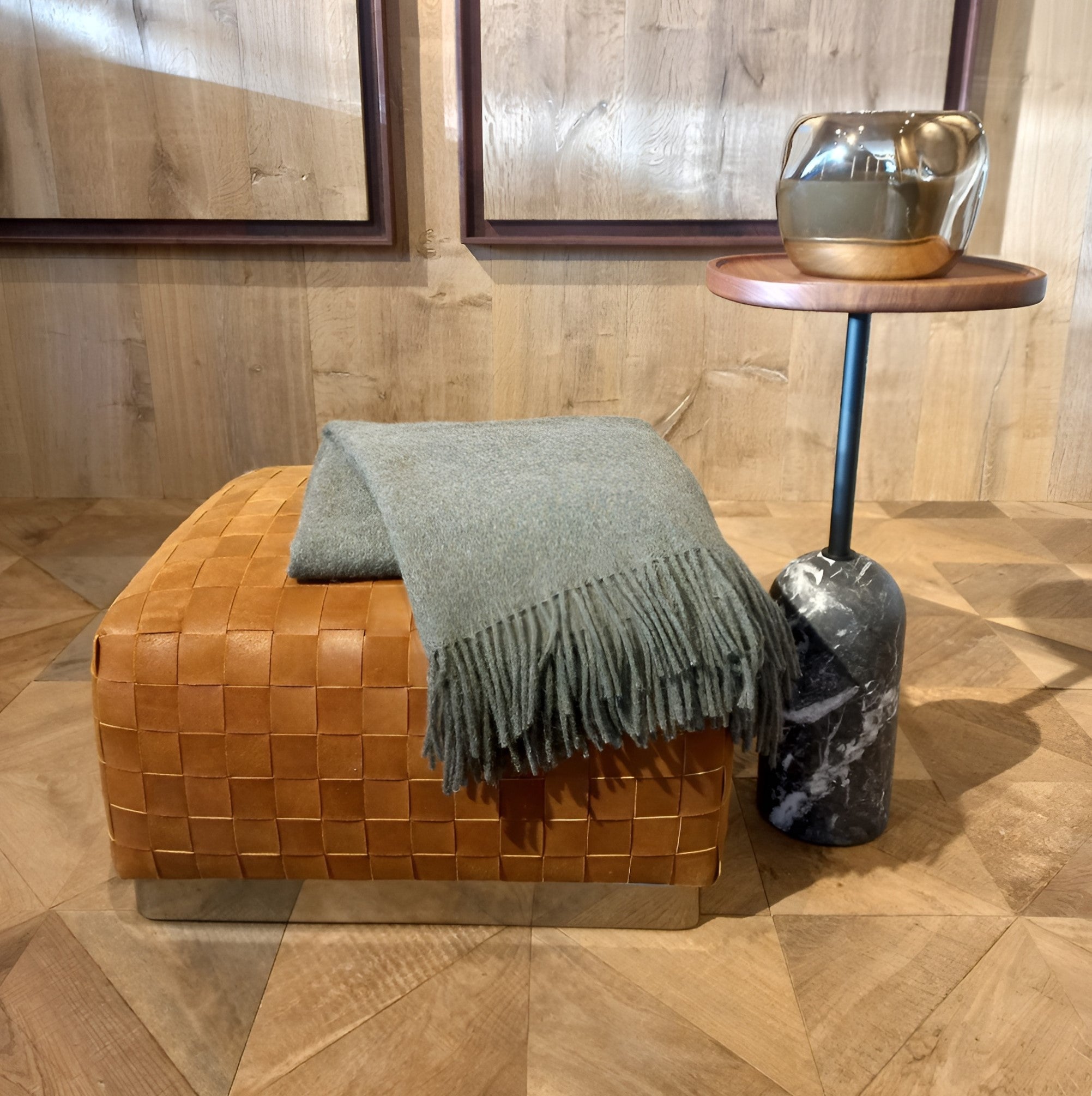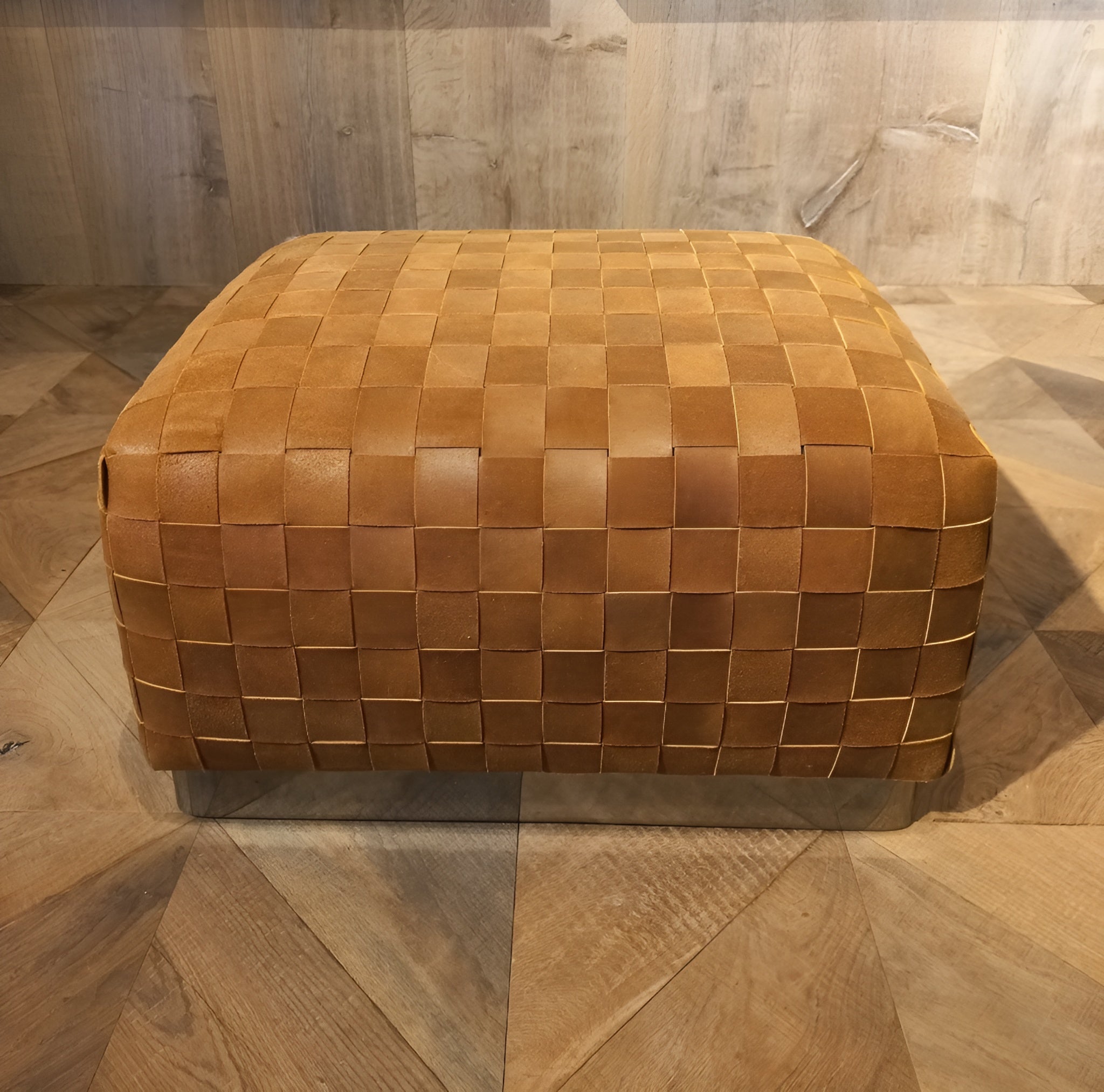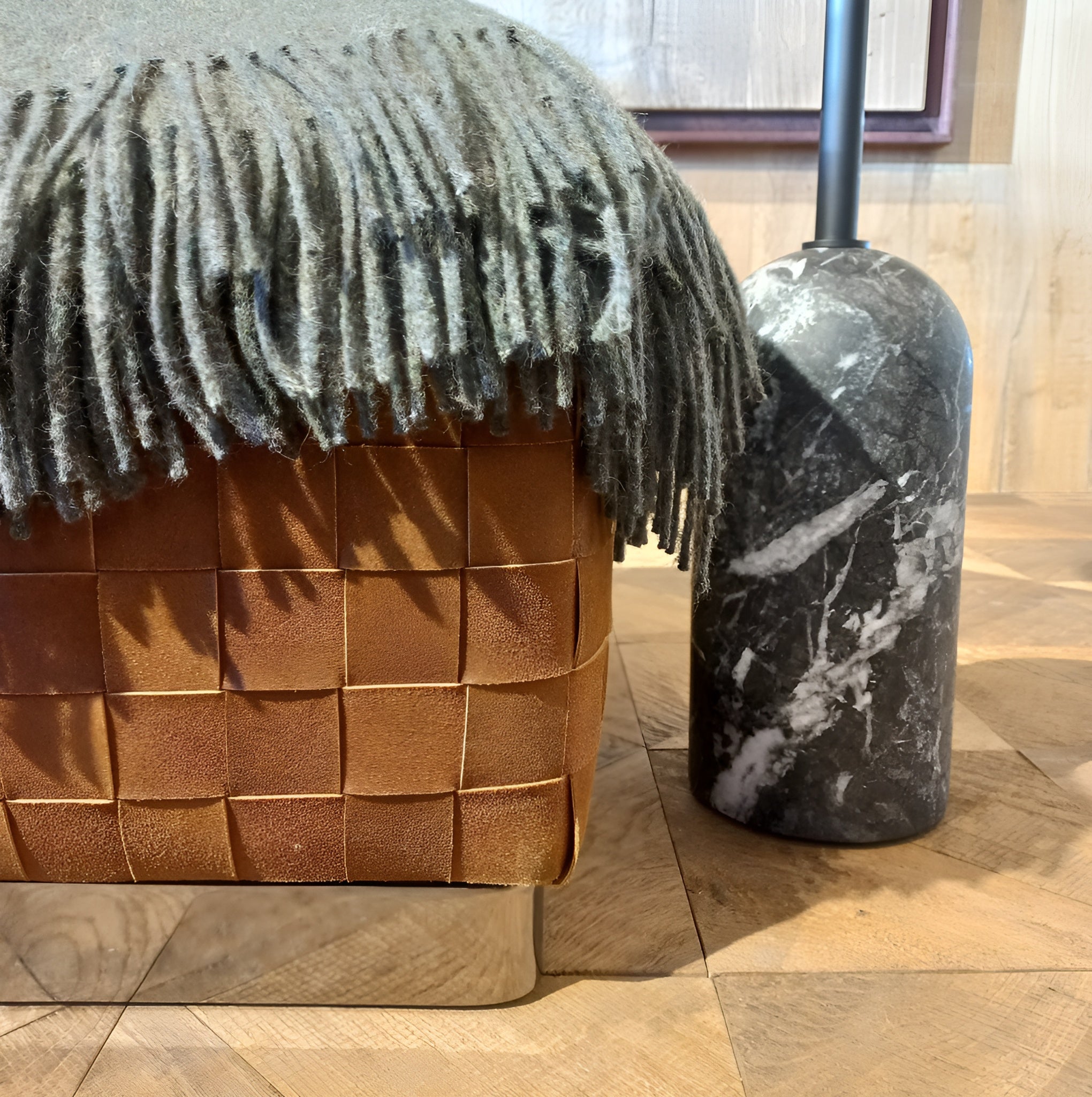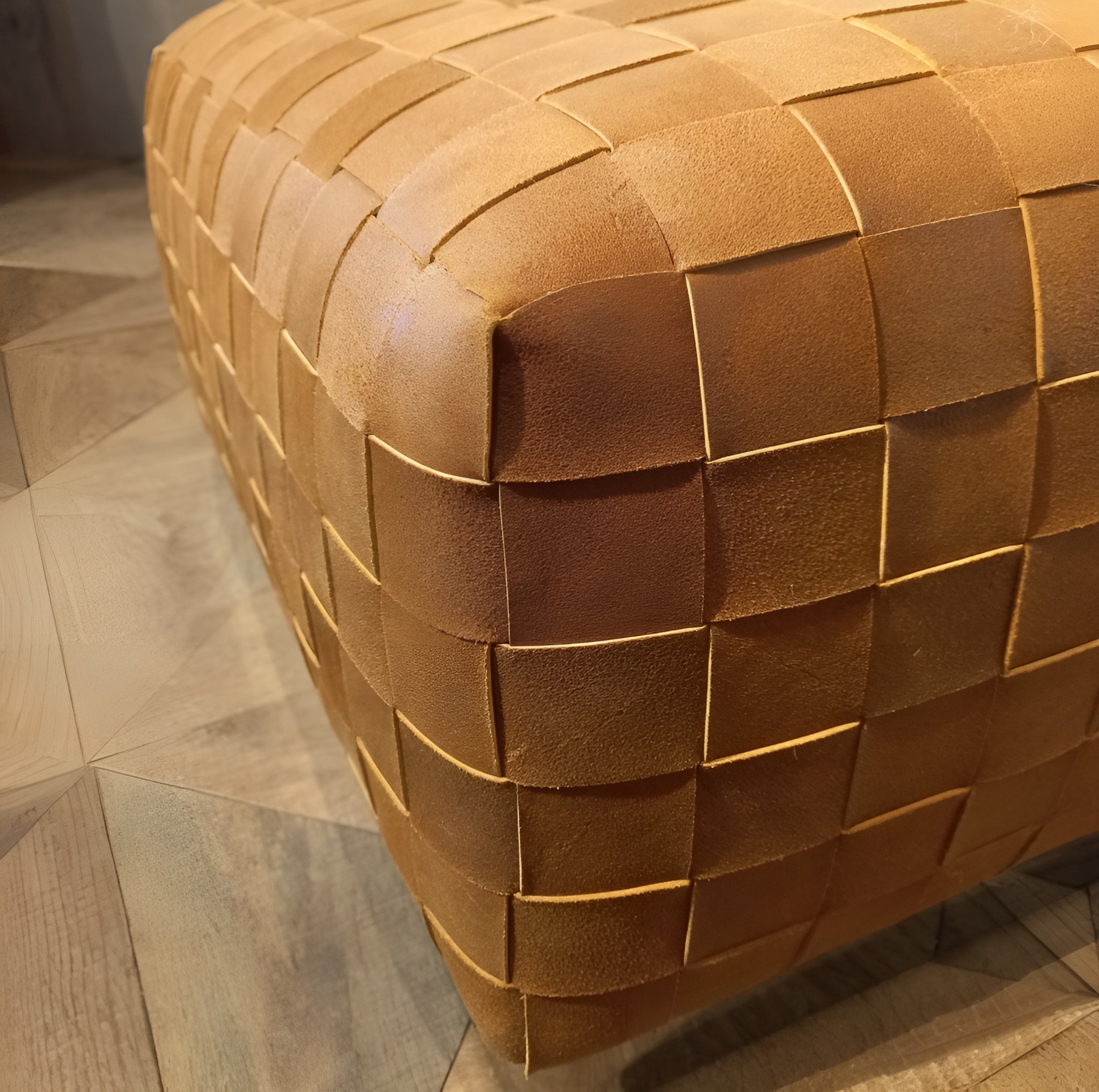 Handgeflochtener Lederhocker gefertigt mit viel Liebe, Fingerspitzengefühl und hochwertigen Materialien.