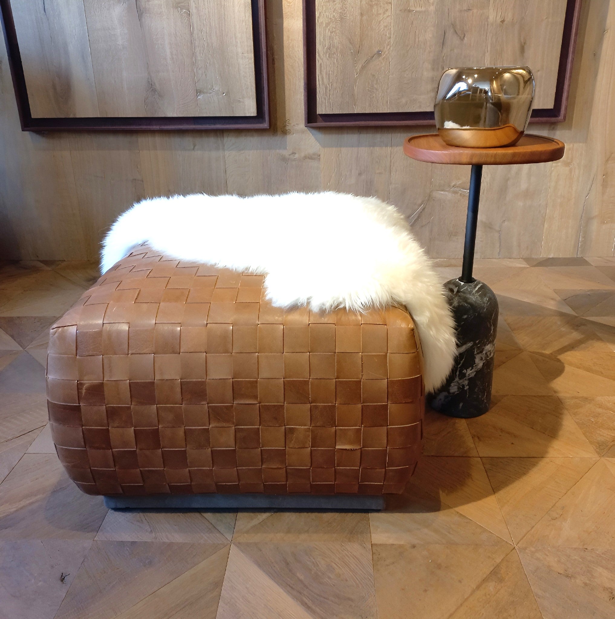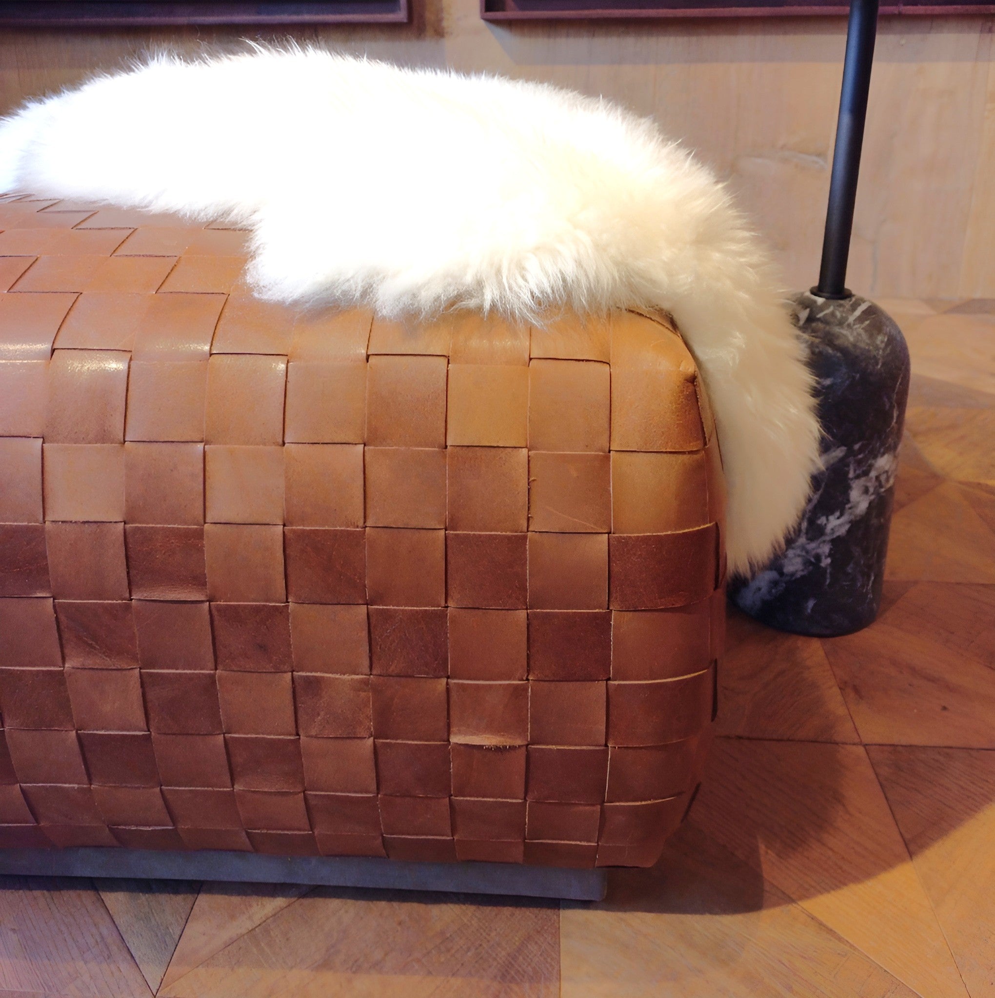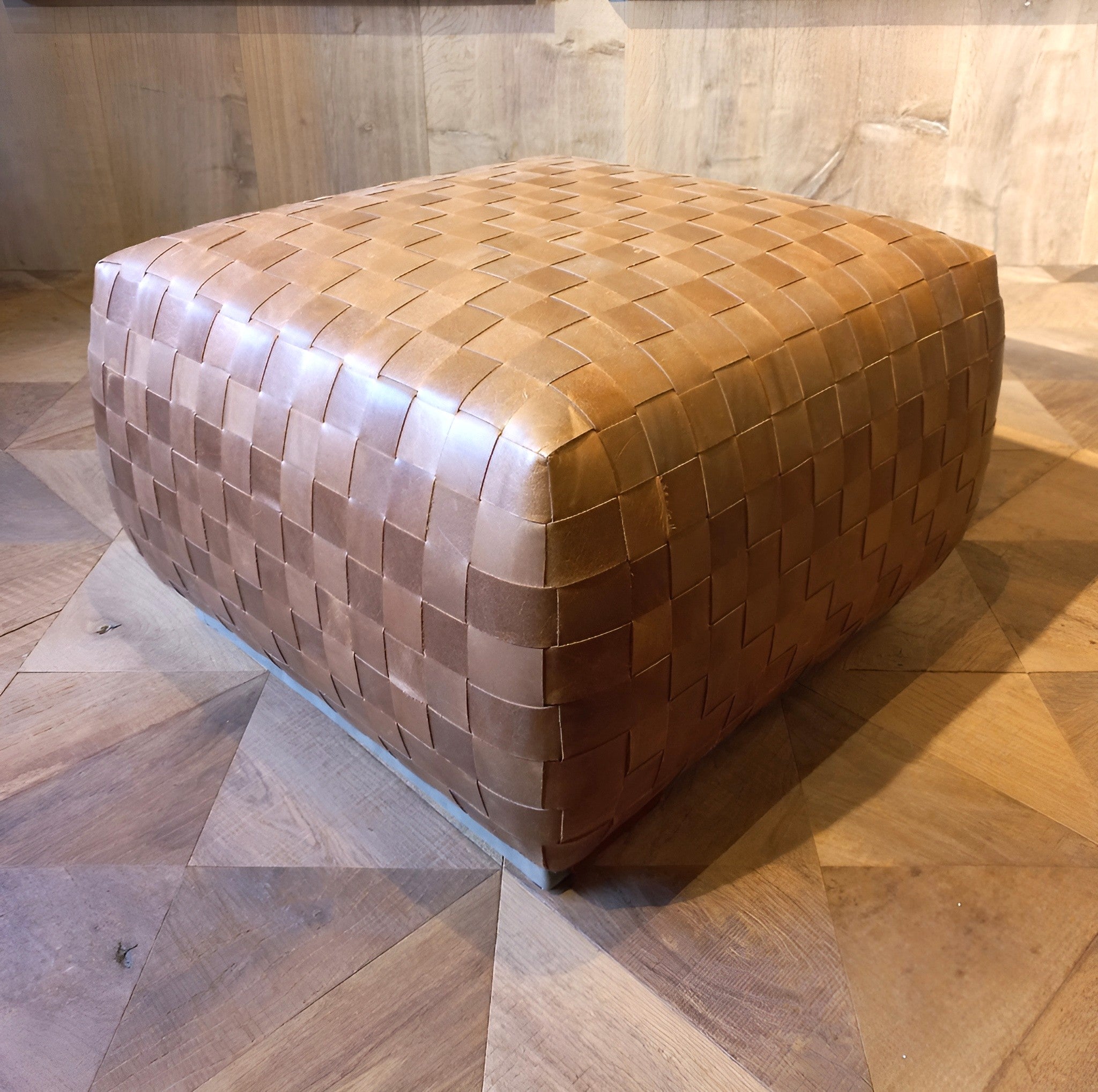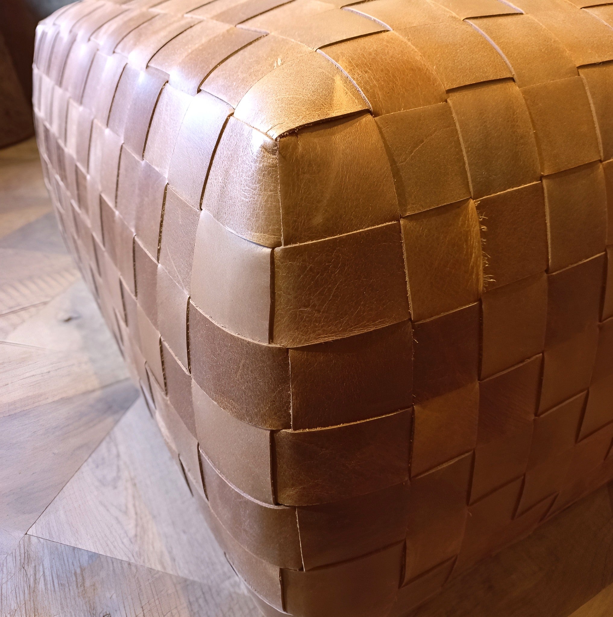 Handgeflochtener Lederhocker gefertigt mit viel Liebe, Fingerspitzengefühl und hochwertigen Materialien.